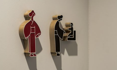 景區標牌設計之民族文化設計風格,在民們民族景區里面有很多不同的風格,以民族文化特點的是非常多的,以民族文化特點設計的洗手間圖標標識,整體的風格具有民族文化特點。